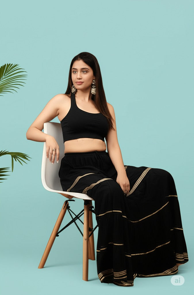 This Sharara is made of Reyon fabric and It is a pair of flared pants.This Sharara provides comfort and perfect body fit with the best look. Pair it with Kurti & heels to complete the look. Fabric of Sharara is a soft fabric. Perfectly stitched & skin-friendly. Perfect for your everyday use, you could pair it with a stylish t-shirt or shirt to complete the look. Party wear, wedding wear, festival wear, style, match it with ethnic kurtas or western outfits.